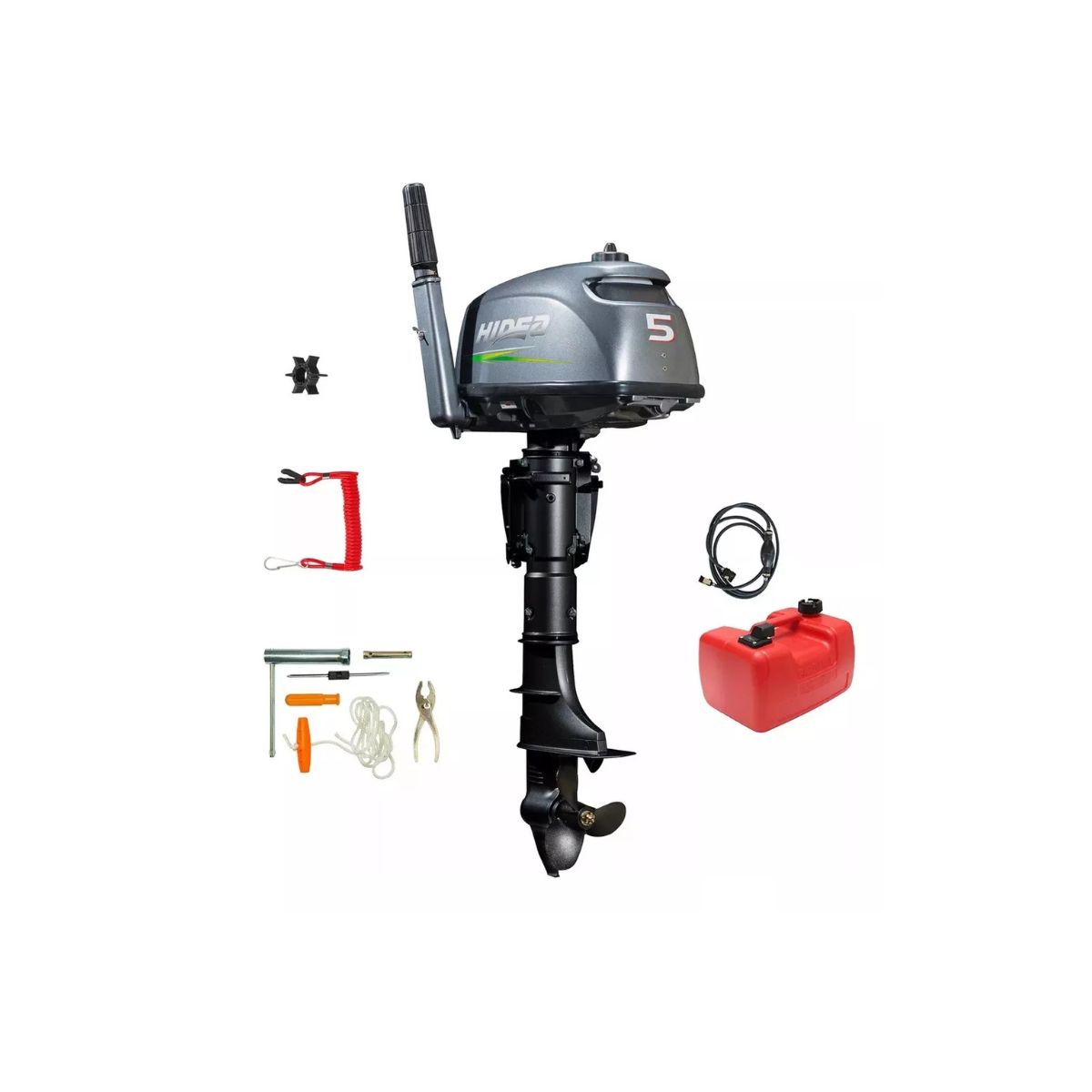 Leve e compacto, o Hidea HD5F é um motor de popa portátil de dois tempos, projetado para ser levado para qualquer lugar. O tanque de combustível embutido torna a instalação do motor extremamente fácil.